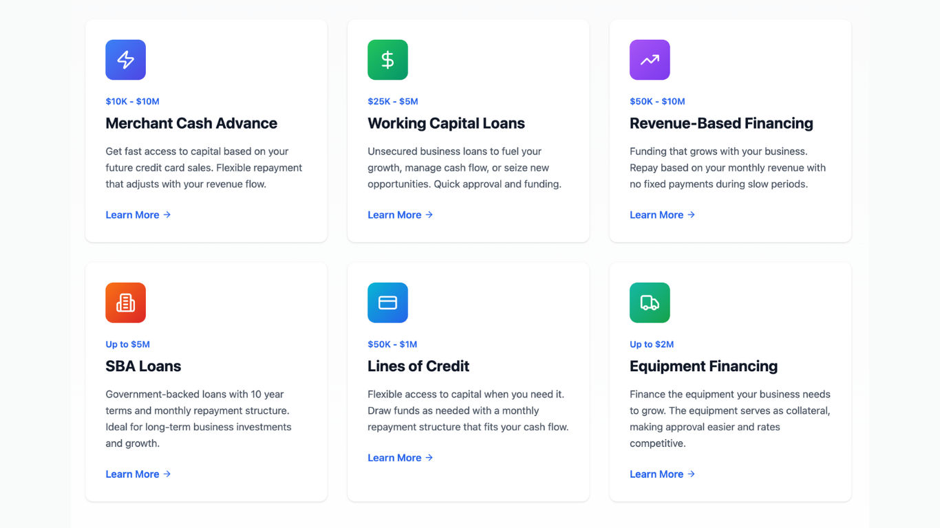 Quick approvals, competitive rates, 1 through 5 Year Terms , and funding up to $10,000,000.
